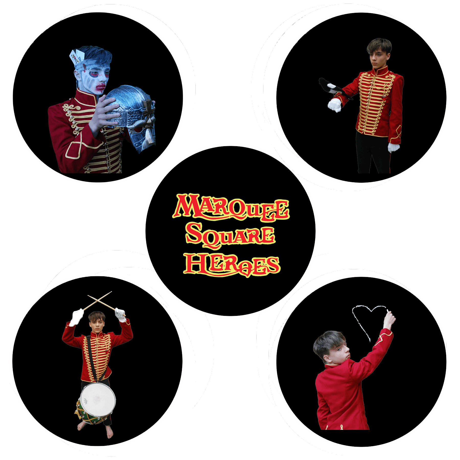 Marquee Square Heroes – 5-Pin Badge Set (25mm)